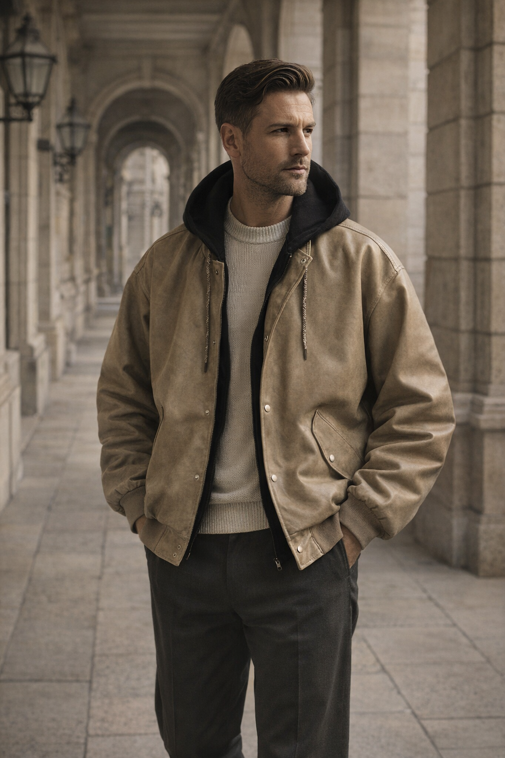 RETRO FAUX LEATHER TWO-PIECE JACKET